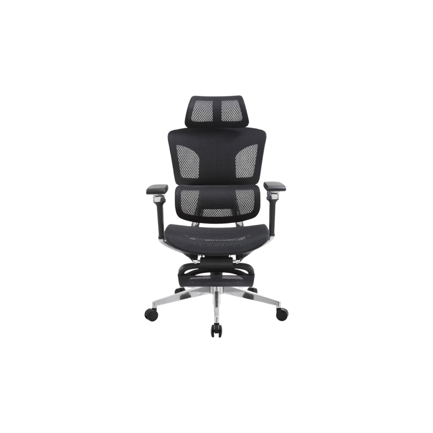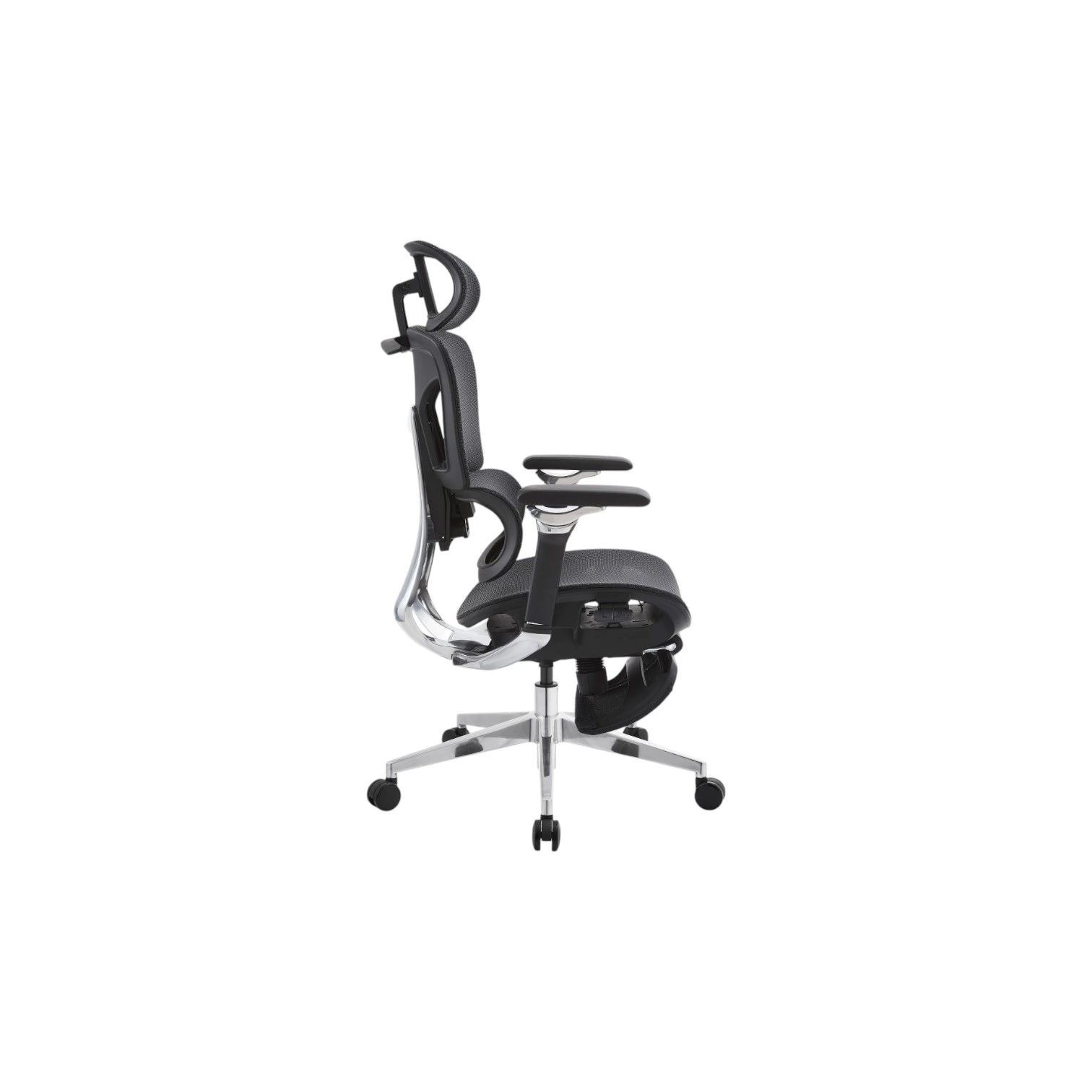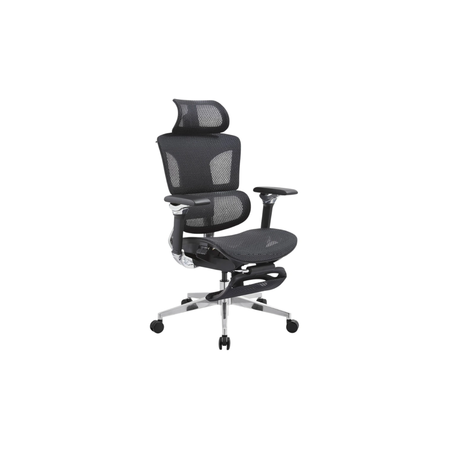 Stol je opremljen s kolesi, integriranimi naslonjali za roke v obliki črke T, naslonjalom za glavo in oporo za noge. Poleg tega stol vključuje nastavljivo 2D naslonjalo za glavo z možnostjo prilagoditve višine in kota, mehanizem za nadzor z žico ter 4 zaklepe sedeža. Prav tako ima stol nastavljiv ledveni del ter možnost premikanja naprej in nazaj, obračanja ter nagibanja. Prevleka je izdelana iz 3D mreže, mehanizem pa omogoča nagib naprej in nazaj. Stol je črne barve.