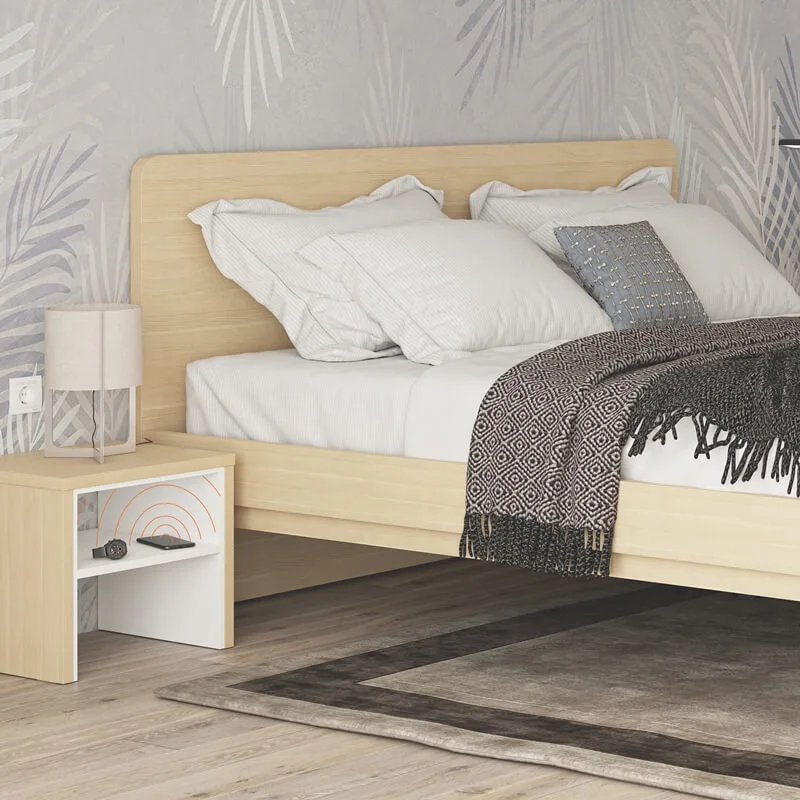 Postelja Magnet je enostavna in preprosta , a hkrati elegantna in zelo kakovostno izdelana postelja. Izdelana je iz zelo kvalitetne iverne plošče v barvi hrast ali bele Magnet. Za dodatno varnost, eleganco in večje udobje pri uporabi poskrbijo zaobljeni vogali na vzglavju.