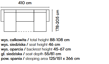 Vključuje ležišče in dva predala za posteljnino ter je nastavljiva po globini. Ima kovinske noge za stabilnost ter možnost izbire barve in postavitve.