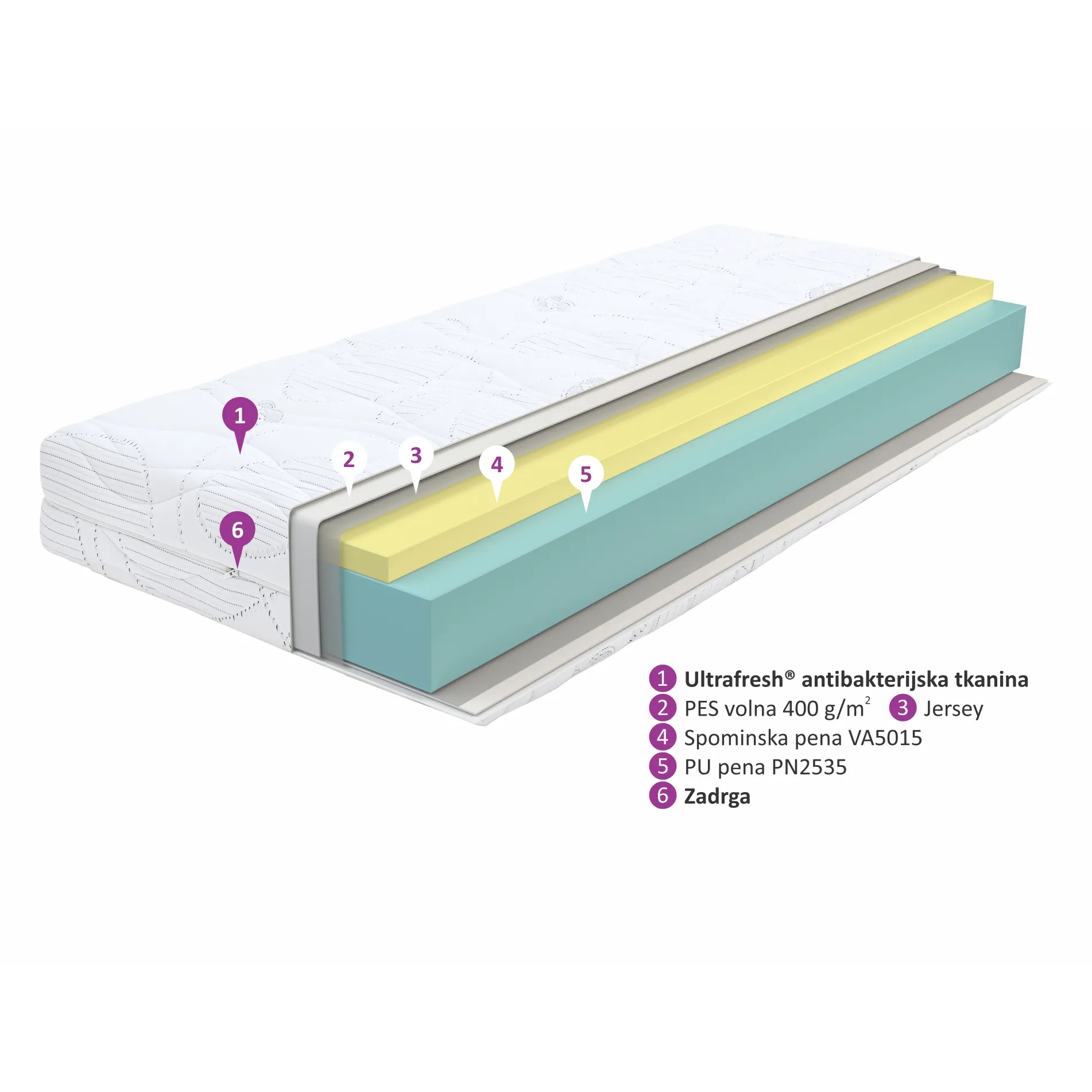 Spominska pena zagotavlja neverjeten občutek brez pretiranega pritiska, dokazano izboljšuje prekrvavitev med spanjem in zagotavlja čuten občutek breztežnosti. Zagotavlja miren spanec brez nepotrebnega zbujanja in pretiranega premetavanja.