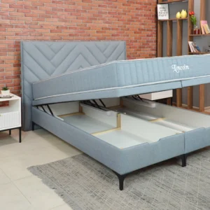 Sodobna in funkcionalna antibakterijska oblazinjena postelja, zasnovana za udobje, estetiko in maksimalen izkoristek prostora. Elegantno oblikovano vzglavje z vertikalnim prešitjem nudi odlično oporo pri branju ali počitku, hkrati pa prostoru doda pridih prefinjenosti. V Posteljo je vključena vzmetnica( vsebuje žepkasto vzmetenje) in prostoren boks za shranjevanje, ki se odpira z dvižnim mehanizmom. Idealen je za shranjevanje posteljnine, odej, vzglavnikov ali sezonskih oblačil. Na voljo je v različnih barvah in materialih (tkanina, žamet ipd.), zato jo lahko popolnoma prilagodite svojemu prostoru.